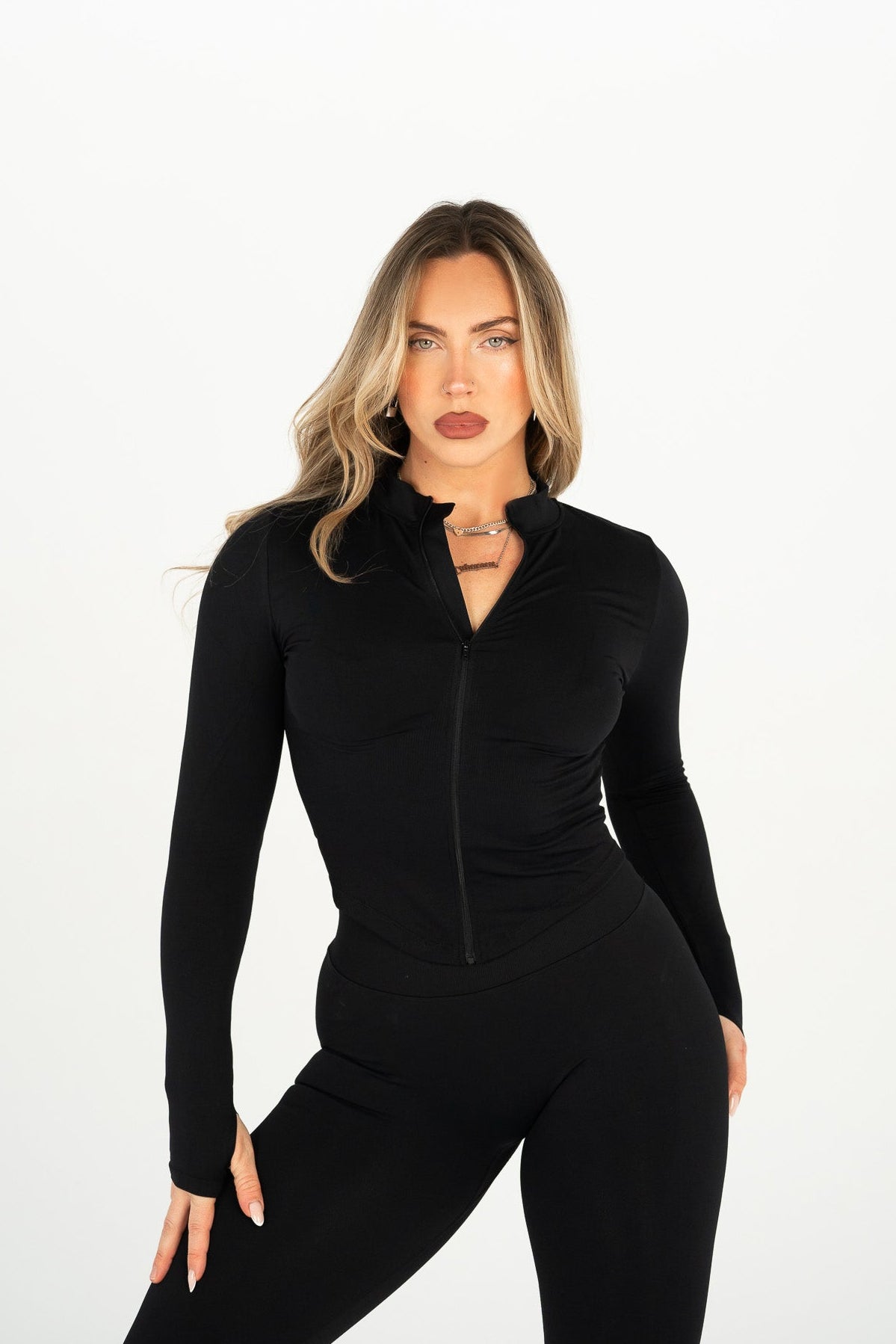 Laissez-nous vous présenter notre SPICY JACKET, notre toute nouvelle veste qui redéfinit la sensualité sportive ! Sa matière légère effet seconde peau, épouse le corps sans le comprimer, pour un confort absolu et une liberté de mouvement totale. Le design structuré crée un visuel corset qui souligne la taille et sculpte la silhouette tout en restant fluide et aérien. Son zip frontal te permet d’ajuster le look selon ton mood : clean, sporty… ou résolument spicy ! Son col montant et ses manches longues avec passe-pouce apportent cette touche sexy et assumée qui fait toute la différence.